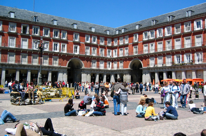 Центральные площади Мадрида в любое время года притягивают толпы людей и гул площадей не замолкает даже по ночам. Центр Мадрида , а также 0км Испании - это площадь Puerta Del Sol, так же для испанцев это 0км любви, т.к. именно здесь, у памятника медвежонка под земляничным деревом назначаются первые свидания молодежи Мадрида.