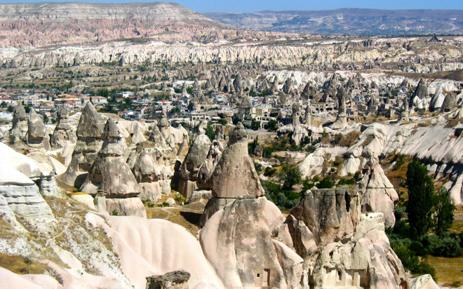 Cappadocia ( Каппадокия) - это уникальный природный памятник, представляющий собой комплекс вырубленных в скалах домов, византийских церквей, монастырей, украшенных фресками, которые до сих пор хорошо сохранились.